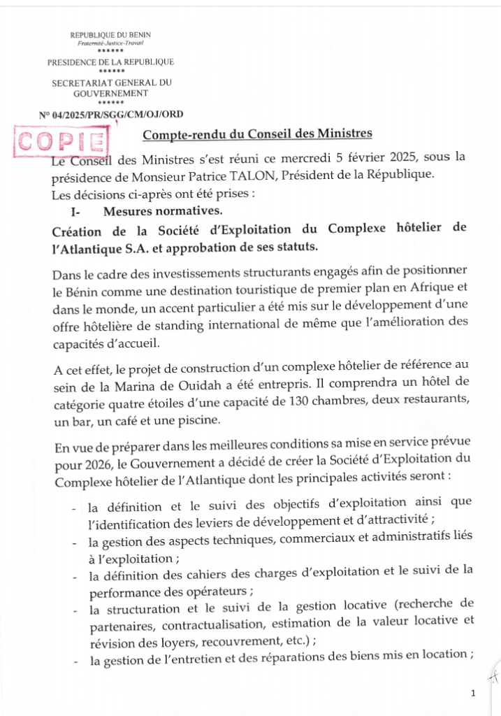 (Voici le compte rendu intégral du conseil des ministres de ce mercredi 5 février 2025)