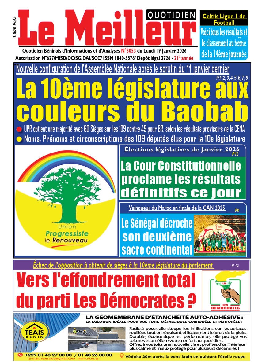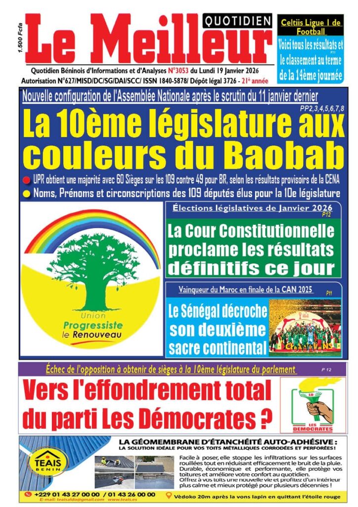 Home » Blog » Bonjour chers abonnés. Voici la Une du Journal Le Meilleur Quotidien de ce lundi 19 janvier 2026.