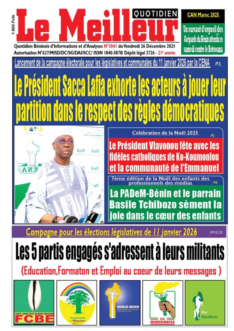 Bonjour chers abonnés. Voici la Une du Quotidien Le Meilleur de ce vendredi 26 décembre 2025. Bonne lecture à toutes et à tous.