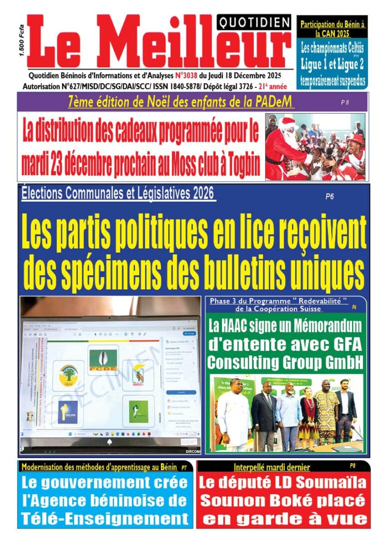 Bonjour chers internautes. Voici la Une du journal Le Meilleur Quotidien de ce jeudi 18 décembre 2025.