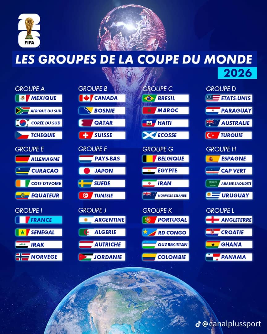 Home » Blog » Coupe de Monde 2026 : Voici la composition complète des 12 groupes