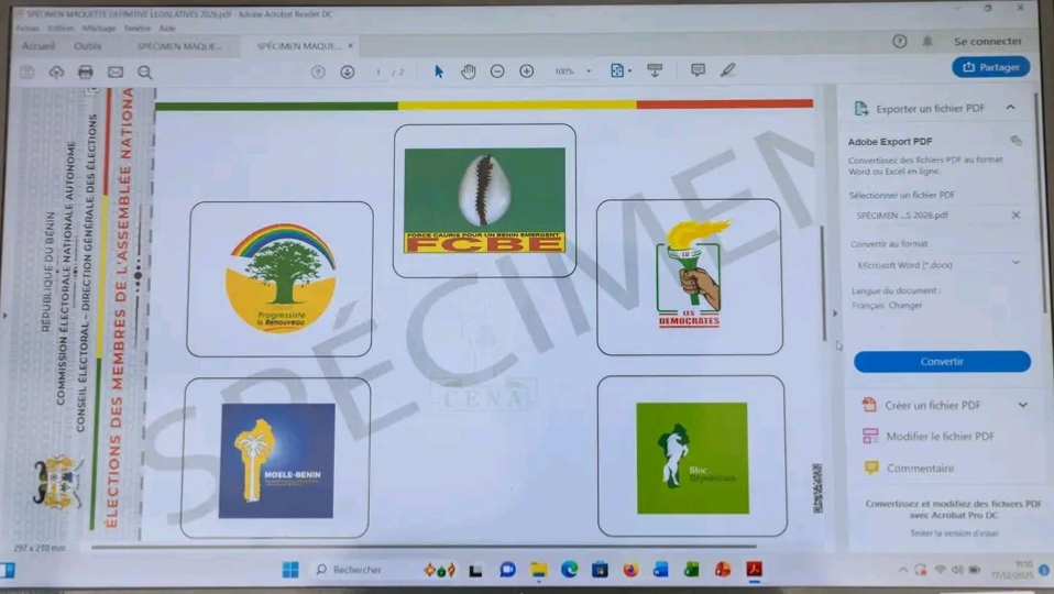 Dans le strict respect des dispositions légales encadrant le processus électoral, la Commission Électorale Nationale Autonome (CENA) a procédé, ce mercredi 17 décembre 2025, à la remise officielle des exemplaires des spécimens de bulletins uniques aux partis politiques dûment enregistrés et régulièrement engagés dans les élections communales et législatives prévues pour l’année 2026. Cette démarche s’inscrit dans le cadre des obligations de transparence et d’équité électorale prévues par la législation en vigueur.