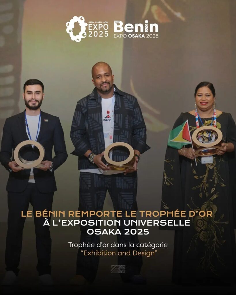 À l’approche de la clôture de l’Exposition Universelle Osaka 2025, le Pavillon du Bénin a été distingué par le Trophée d’Or dans la catégorie “Exhibition and Design”, décerné par le Bureau International des Expositions (BIE) et le Comité d’organisation japonais. Cette distinction prestigieuse vient couronner six (06) mois d’un engagement exceptionnel et d’un rayonnement sans précédent, porté par la créativité, la rigueur et la vision du Bénin depuis l’ouverture officielle de l’Expo, le 13 avril dernier.