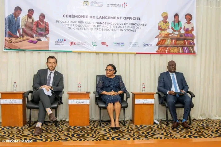 Le Programme BEN 005, intitulé « Finance Inclusive et Innovante » , ainsi que le projet d’Éducation Financière et de Protection des Clients des Systèmes Financiers Décentralisés (SFD) à travers les Guichets Uniques de Protection Sociale (GUPS), ont été officiellement lancés ce jeudi à Cotonou. Cet événement a réuni de nombreux acteurs du secteur financier, des représentants d’ONG, de l’association des consommateurs des SFD, ainsi que des partenaires techniques et financiers, notamment le Représentant de l’Ambassade de Luxembourg.