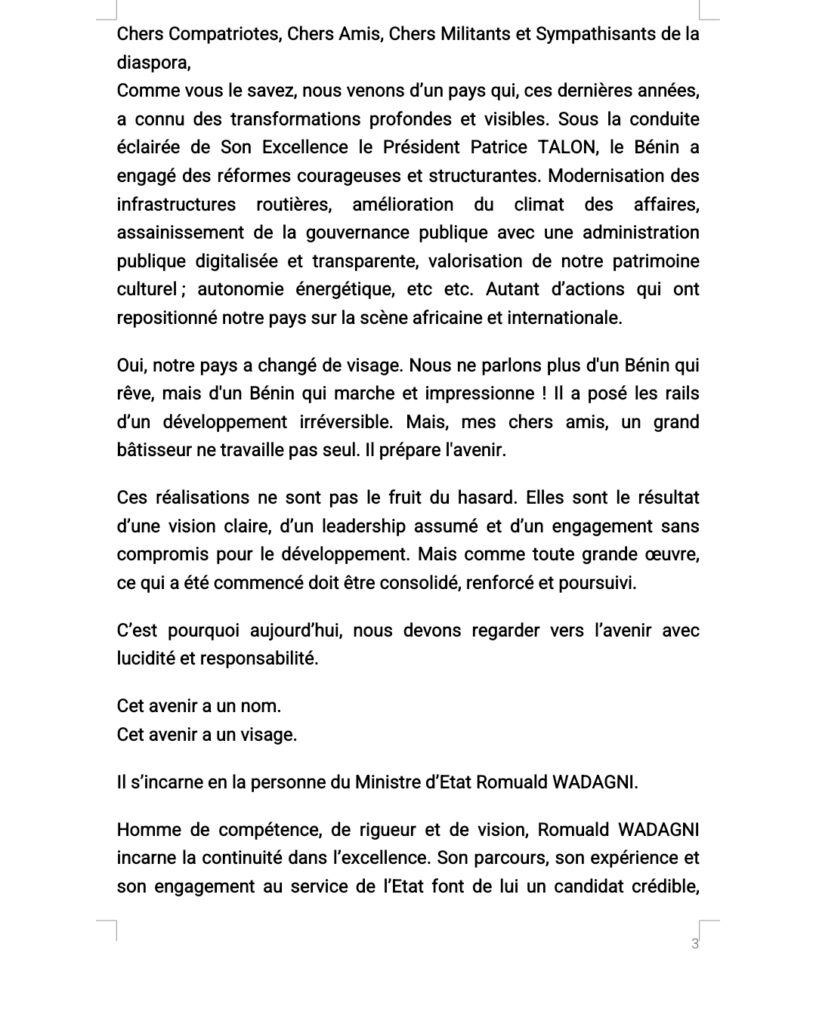 Au-delà de l’acte formel d’installation, cette initiative s’inscrit dans une dynamique plus large de consolidation des soutiens autour de Romuald Wadagni. Elle illustre la montée en puissance d’un réseau organisé, capable de porter la parole du candidat au-delà des frontières nationales et de fédérer les énergies autour d’un projet commun.