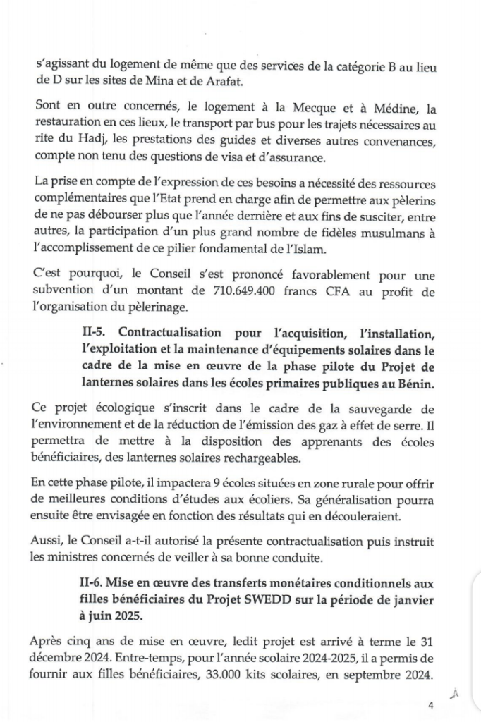 Dans le but de garantir aux pèlerins béninois la qualité des prestations pendant leur séjour sur les différents sites en Arabie Saoudite, le gouvernement a apporté un appui significatif pour une bonne organisation de cette mission religieuse de la communauté musulmane.
