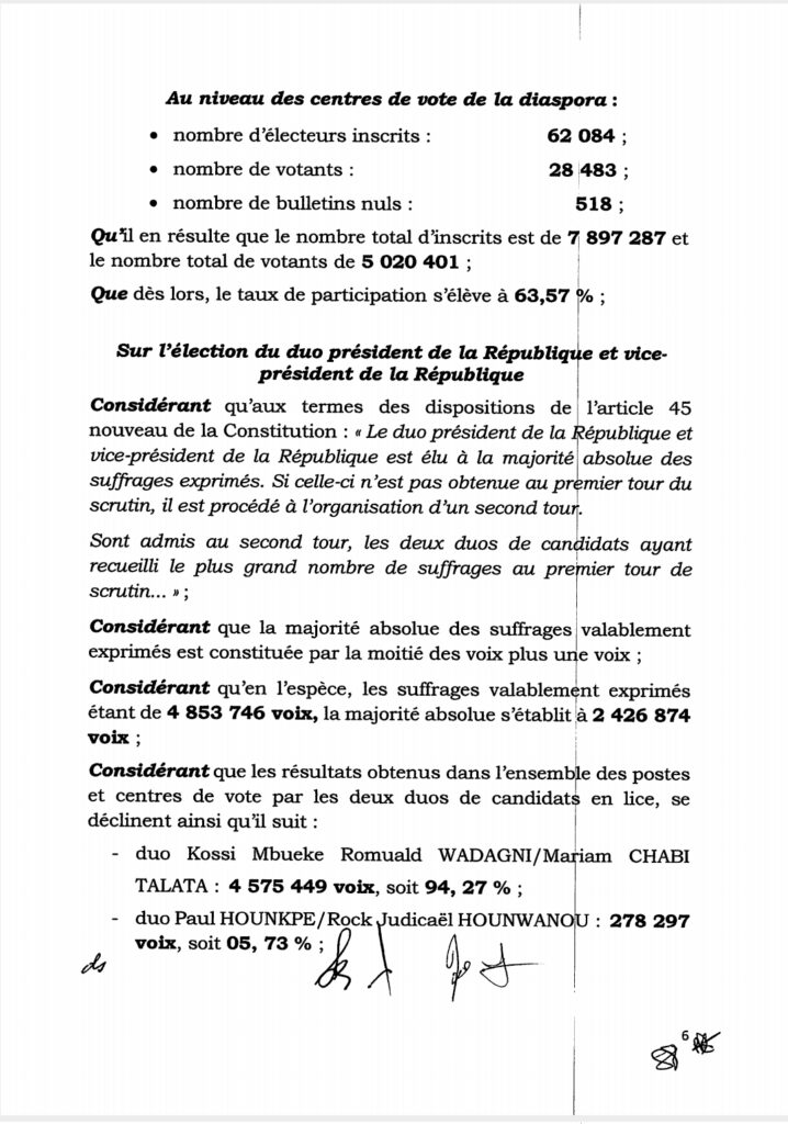 Home » Blog » Présidentielle 2026/la Cour constitutionnelle tranche : Wadagni-Talata confirmés dès le premier tour avec 94,27% des suffrages exprimés