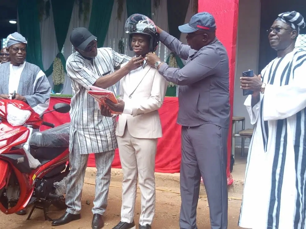‹‹ Cette moto que je t’offre aujourd’hui symbolise ma volonté inébranlable à soutenir l’excellence scolaire en tant que parent d’élève mais surtout en tant que Premier citoyen de cette commune. Elle doit te permettre de poursuivre sereinement tes études supérieures et de devenir davantage un modèle pour la jeunesse de Parakou ››, a déclaré le Chef de l’exécutif municipal de la cité des kobourous.