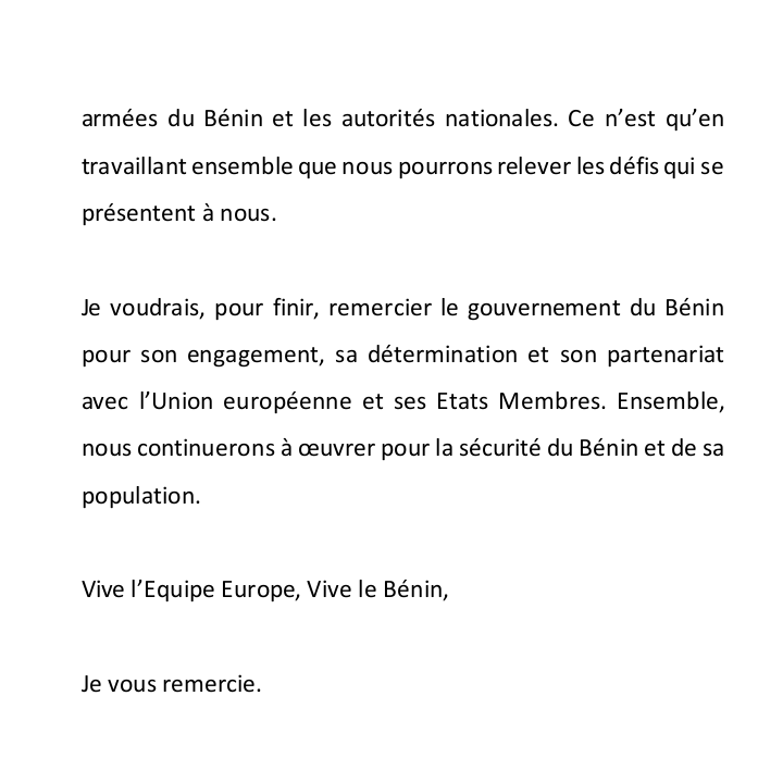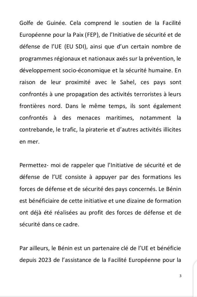 (Message de SEM Stéphane Mund, Ambassadeur de l’Union Européenne au Bénin)