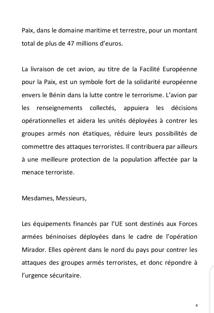 Home » Blog » Renforcement des opérations de lutte contre le terrorisme : L’Union Européenne dote les Forces Armées Béninoises d’un avion léger de surveillance et de reconnaissance
