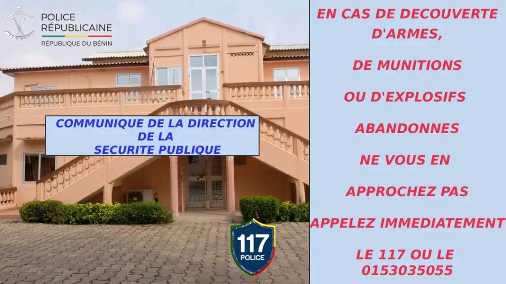 Compte tenu du danger que représente la manipulation desdits matériels, le Directeur général de la Police républicaine demande aux populations de signaler toute découverte en appelant le numéro vert (117) ou le 0153035055.