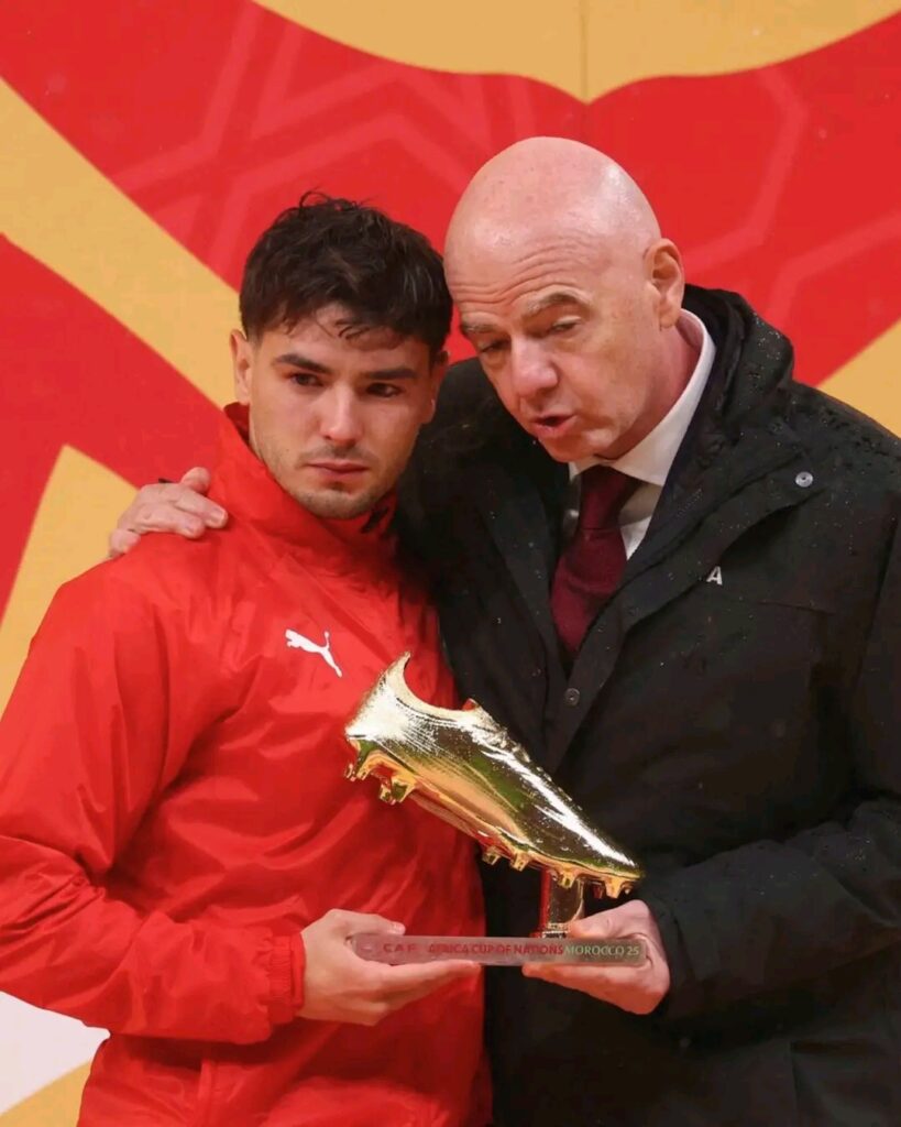 L’attaquant marocain Brahim Diaz, reçoit son soulier de meilleur buteur de la compétition